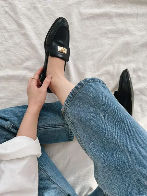『版型偏小請拿大一號』牛皮金口樂福鞋